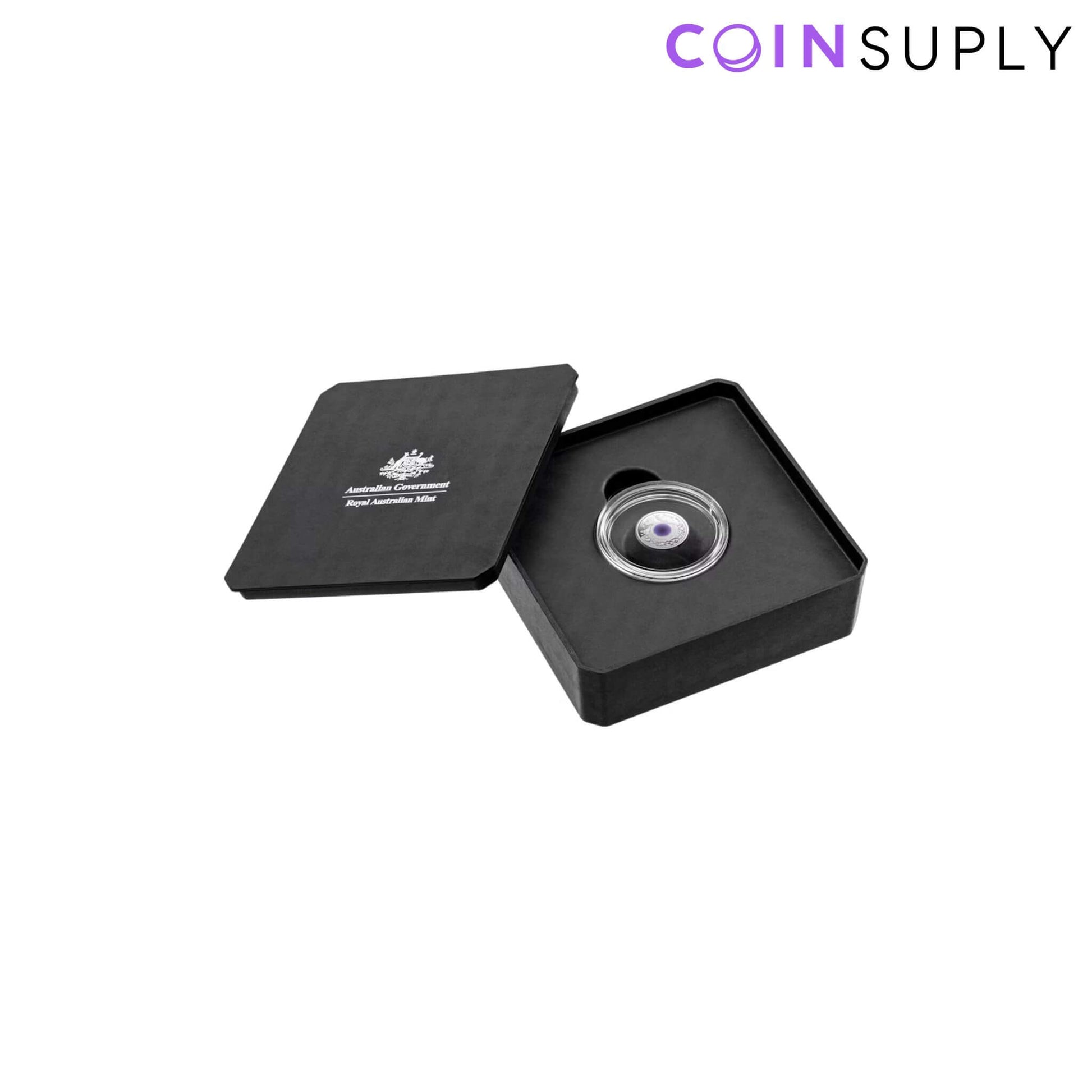 The coin arrived quickly and was packaged well. The display box makes the coin stand out. The colour is amazing. We love our purchase.